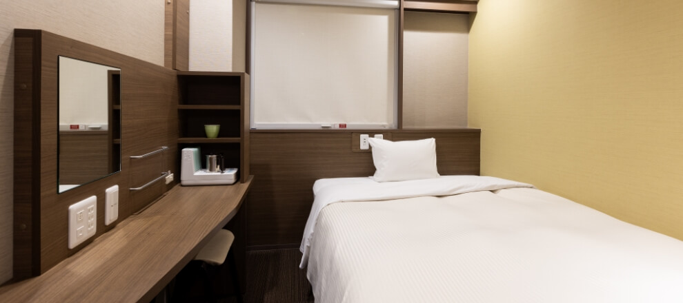 客室は全155室を有し、シングル・ツインを中心に幅広いニーズに対応。館内にはレストランやコインランドリーなどの設備も整っており、長期滞在にも適した快適な環境が整っています。