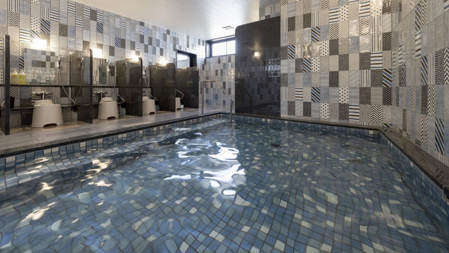 館内には「二股湯の華」を使用した人工温泉大浴場を備えており、サウナも完備。