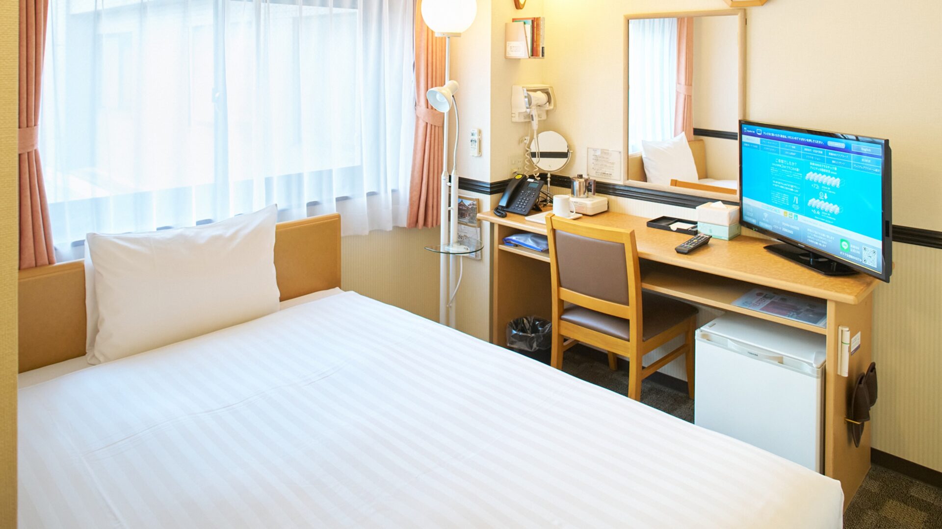 客室数は約100室規模で、シングル・ダブル・ツインなどを用意。全室Wi-Fi完備で、シンプルながら機能的な客室設計となっており、出張や短期滞在に適しています。