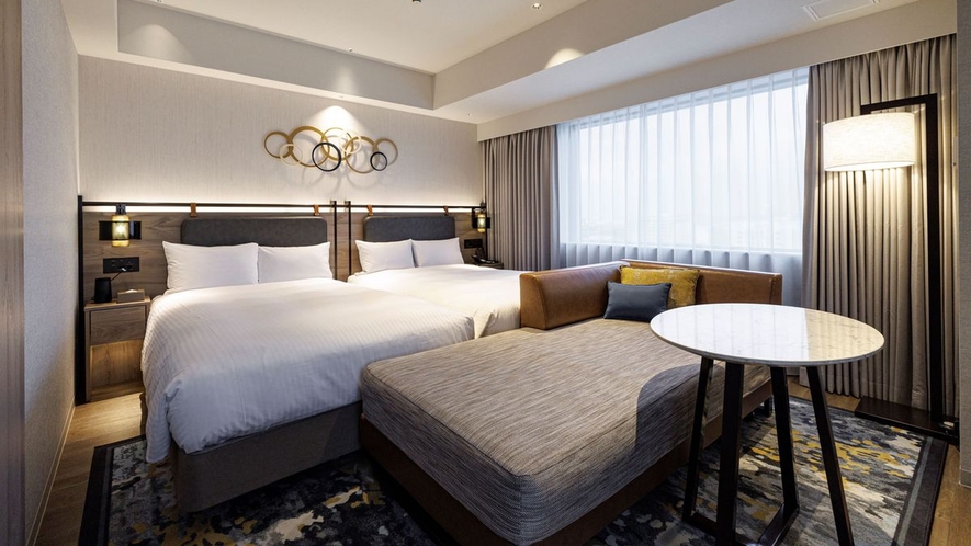 客室数は約294室で、シングル・ダブル・ツイン・トリプルなど幅広い客室タイプを用意しています。客室は18㎡前後からと比較的ゆとりがあり、全室にシモンズ製ベッドを採用するなど、快適な滞在を重視した設計となっています。