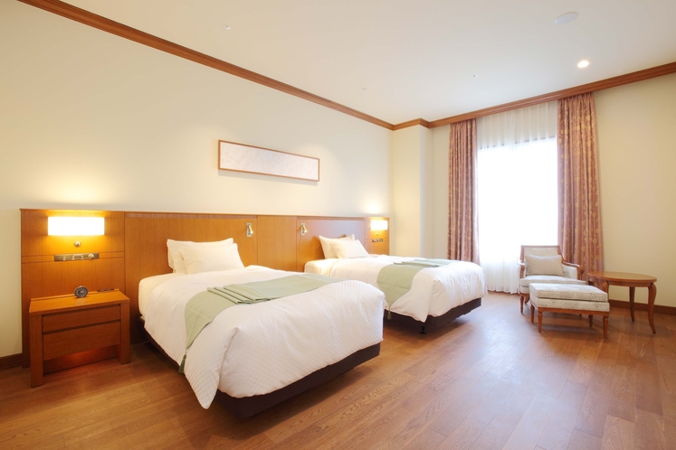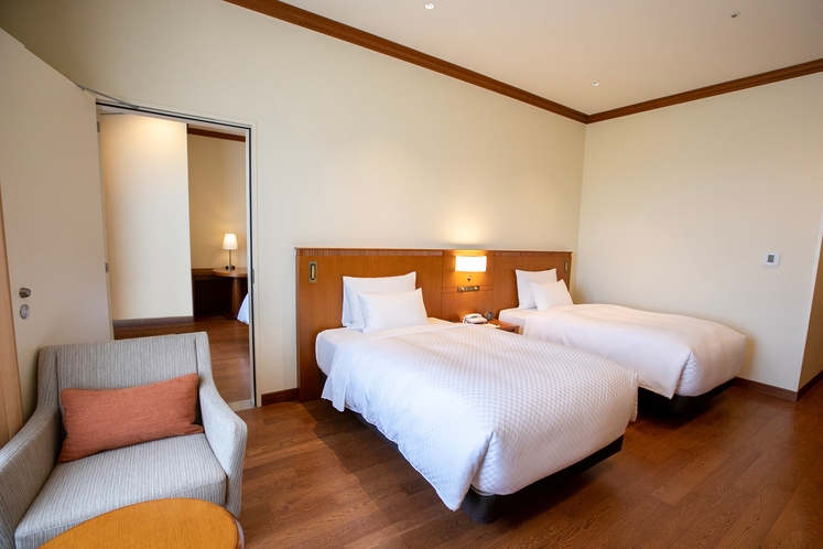 客室は全室43㎡以上と非常に広く、シモンズ製の高級ベッドを採用するなど、上質な宿泊体験を重視した設計となっています。スタンダードルームでも一般的なビジネスホテルより大幅に広く、ゆとりのある空間で快適に過ごせます。