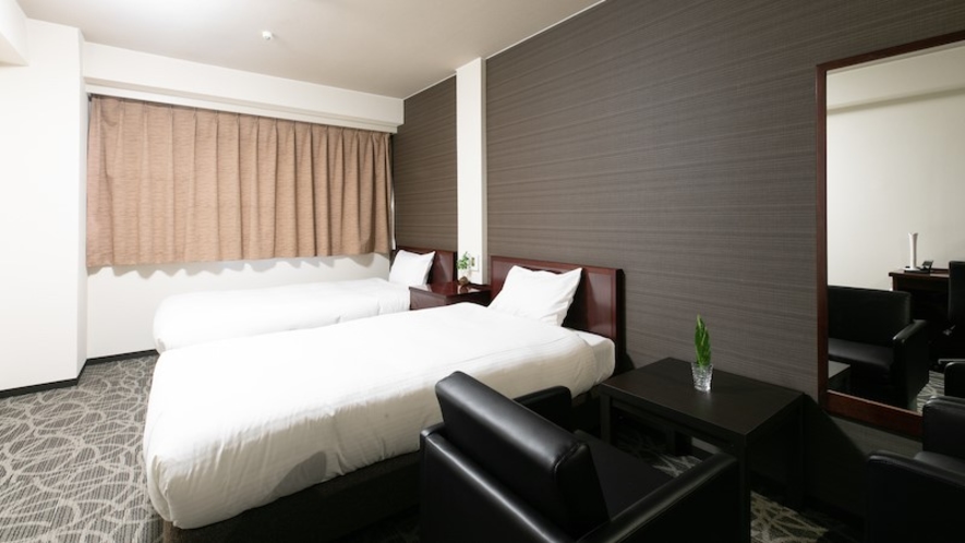 客室数は約200室規模で、シングル・ダブル・ツインなど幅広いタイプを用意。全室に無料Wi-Fiや基本設備を完備し、シンプルで機能的なビジネスホテル仕様となっています。館内にはレストランや会議室、コインランドリーなどもあり、長期滞在や出張にも対応可能です。