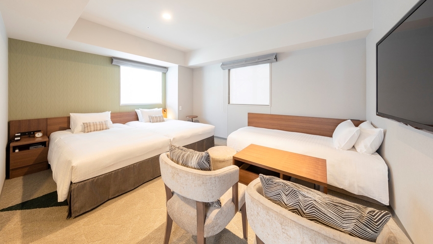客室数は約170室規模で、シングル・ダブル・ツインなど幅広いタイプを用意。全室に洗濯乾燥機・電子レンジ・ミニキッチンを完備しているのが最大の特徴で、長期滞在や出張に非常に適した“滞在型ホテル”です。内装は「空・森・草原」をテーマにしたデザインで、一般的なビジネスホテルよりもやや上質な空間となっています。