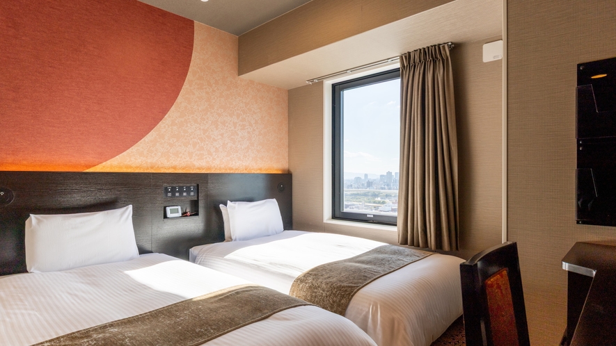 客室は全400室規模のタワー型ホテル(32階建て)で、シングル・ダブル・ツインなどを備えた機能的な構成となっています。客室は12〜14㎡とコンパクトながら、アパホテルらしい高品質ベッドや大型テレビなど、快適性を重視した設備が整っています。