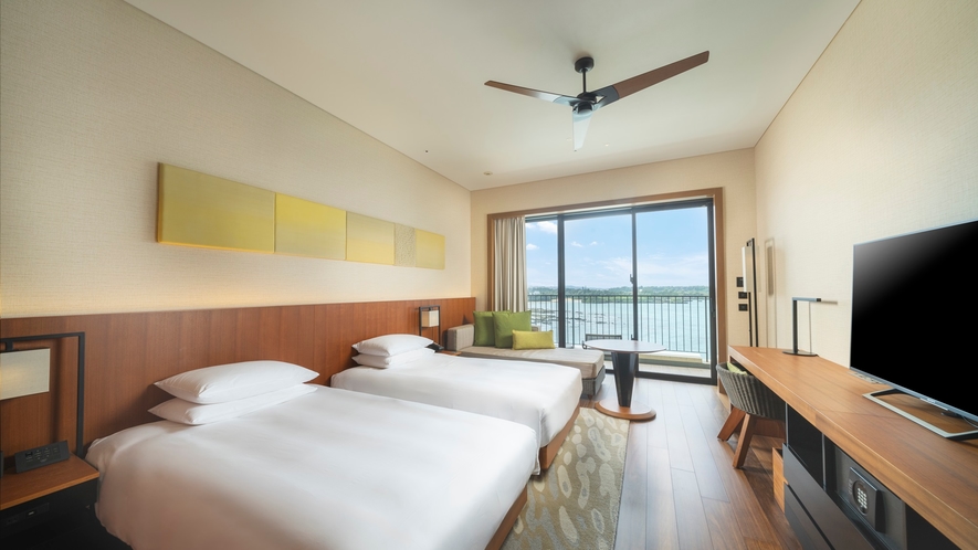 ホテルは「ザ・アイランド」と「ビーチハウス」の2つの棟で構成され、全343室の客室はバルコニー付きで、それぞれ異なる海の景色を楽しめます。