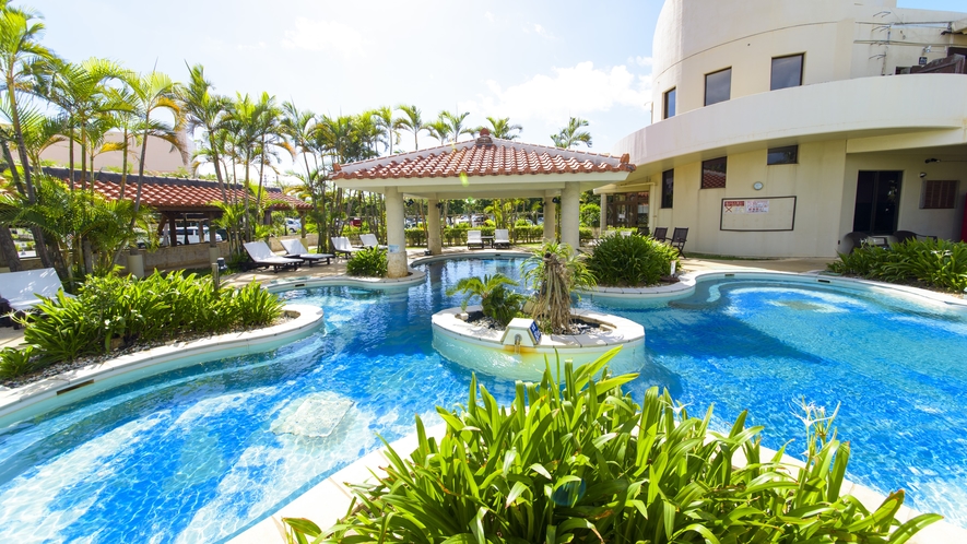 また、館内の大きな特徴として、隣接施設の天然温泉&プール「ちゅらーゆ」が利用できる点があり、沖縄では珍しい温泉リゾート体験が可能です。さらに、ウェルカムドリンクや夜鳴きそばなど、サービス面も充実しています。