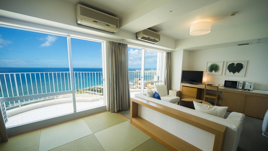 ホテルは地上24階建ての高層リゾートホテル(約280室)で、客室は約46㎡前後の広めの設計となっており、東シナ海や街並みを望む開放的な景観が魅力です。