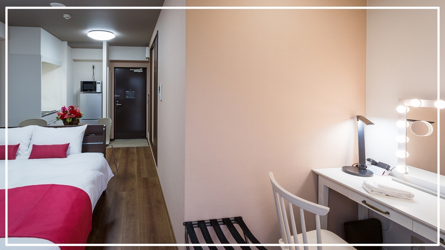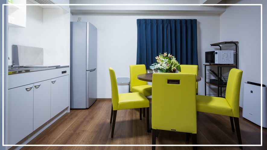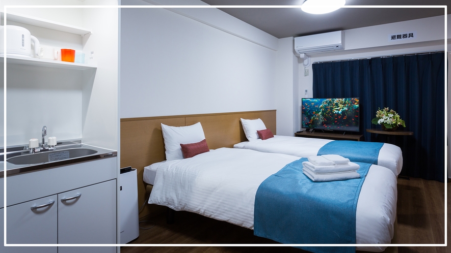 全53室の中規模ホテルで、一般的なビジネスホテルとは異なり、家具・家電・IHキッチン付きのコンドミニアム仕様となっているのが大きな特徴です。ワイドデスクやWi-Fi環境も整っており、ワーケーションや長期滞在にも適しています。
