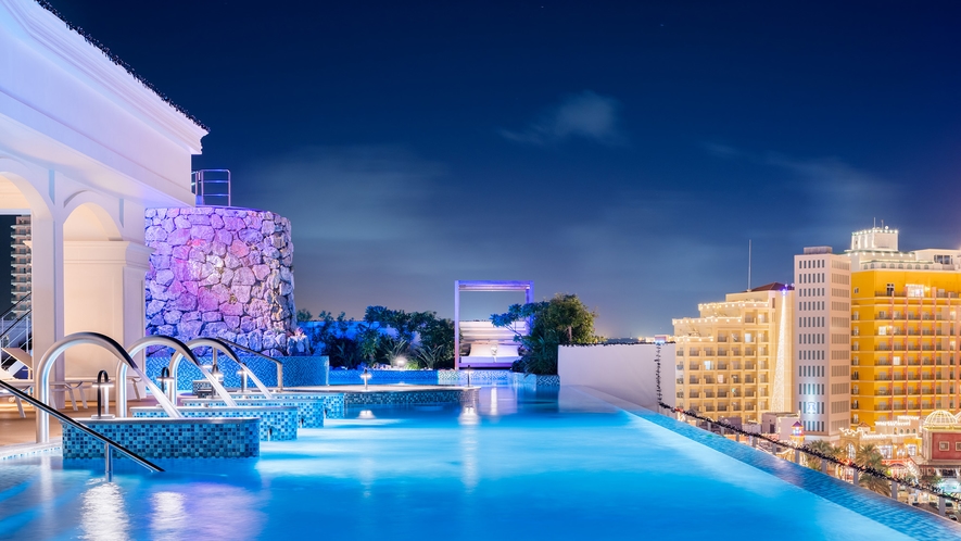 このホテルの大きな魅力は、天然温泉大浴場(北谷温泉)+屋上インフィニティプールがある点です。那覇近郊で「温泉+リゾート感」を同時に楽しめる珍しいホテルで、サウナやラウンジなどの設備も充実しています。