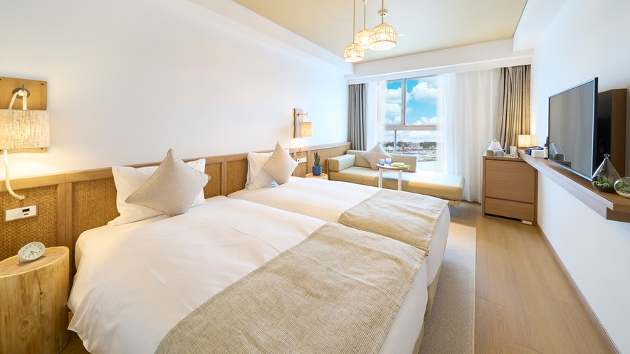 客室は全220室の中規模ホテルで、シンプルで落ち着いたデザインの客室が特徴です。館内にはリビングロビーやレストランがあり、朝食は沖縄料理を含む40種類以上のビュッフェが提供されるなど、サービス面も充実しています。