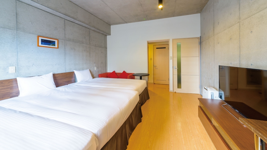 客室はバス・トイレ別、バルコニー付きの部屋が多く、“暮らすように泊まれる”設備が整っているのが大きな特徴です。特に長期滞在やワーケーション、ファミリー利用にも向いており、一般的なビジネスホテルより実用性が高い設計です。