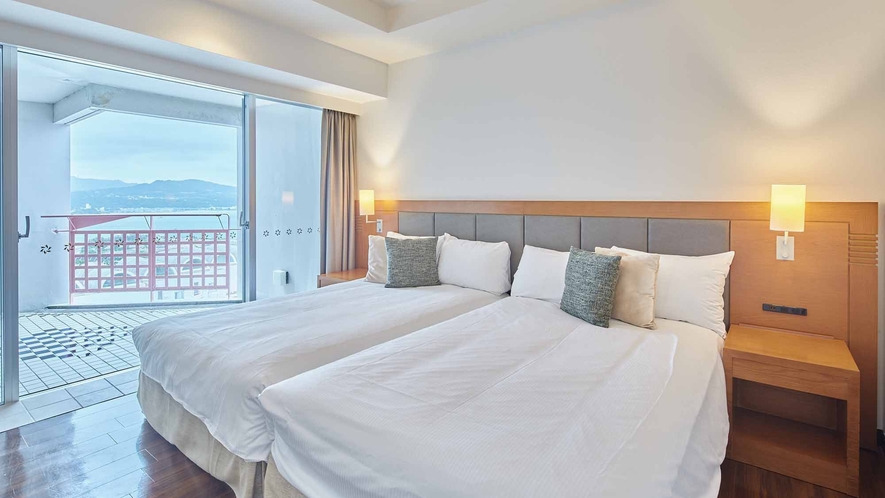 客室は全室オーシャンビューで広めの造りとなっており、和洋室やファミリールームなどゆったり過ごせるタイプが充実しています。館内には大浴場やインドアプール・屋外プールなどの施設があり、リゾートらしい滞在が楽しめます。